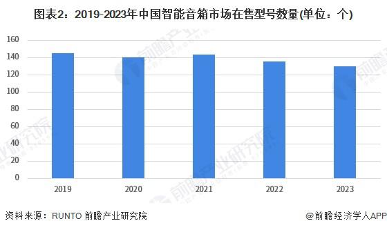 中國智能音箱市場在售品牌數量逐年減少,從 2019 年的 47 個縮減至 2023 年的 22 個,顯示出市場競爭加劇和品牌加速淘汰的趨勢。