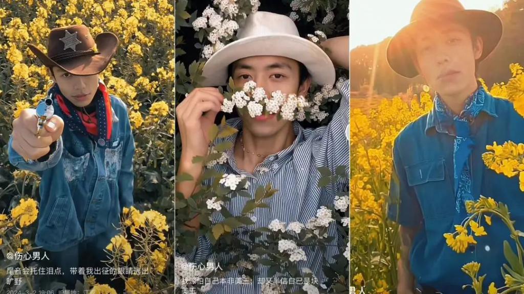 @何秋亊 之外,@傷心男人 升級內(nèi)容形式,開啟了變裝玩法的新賽季。通過穿搭、場景、濾鏡、構(gòu)圖、鏡頭表現(xiàn)力、BGM的多重變化,他為用戶展現(xiàn)了一場又一場的風(fēng)格化變裝大秀,輕松在視覺上調(diào)動了眾多用戶的注意力,2024年共漲粉372W;